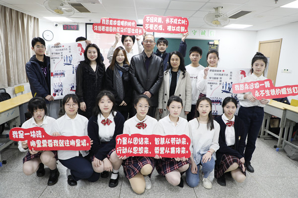 3月24日上午,在附中关工委常务副主任曹步锋的带领下,初二(4)班组织学生开展“榜样的力量——向雷锋同志学习”主题班会活动,通过分享雷锋故事、讨论各自对雷锋精神的认识与传承、表演情景剧、开展小合唱等多种形式,激发大家争做新时代弘扬雷锋精神的践行者。