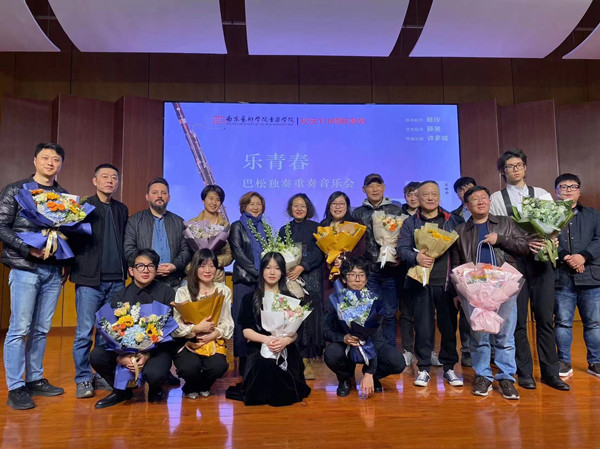 3月13日,在南京艺术学院音乐学院演奏厅,举办了杨铃老师的学生——南艺附中吕姝含、钱秋石及南艺本科生宋冠霖的巴松独奏重奏音乐会,特邀长笛许多城。本场音乐会由南京艺术学院音乐学院主办,薛景老师担任艺术指导。音乐会邀请了音乐学院关工委老教师汪辉、甘俊两位老师前来观看指导。