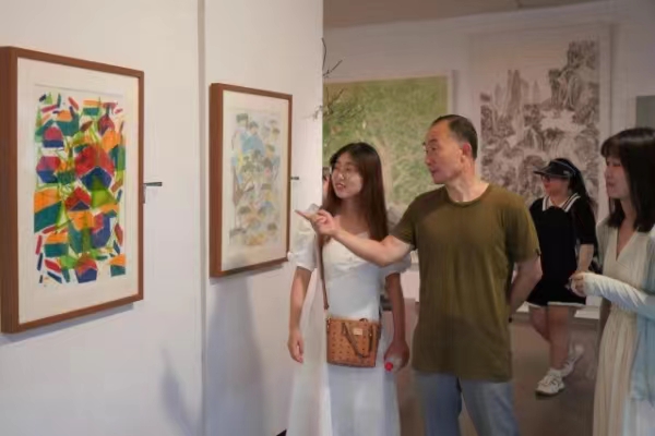 为了展示2023届毕业生的学习成果和未来规划,深入了解多元化的艺术发展趋势,提供更广阔的艺术视野与审美领域,南艺美术学院于美术馆展出2023届毕业生作品展。2023年6月3日下午,美术学院关工委常务副主任陆根生老师和关工委秘书路岩老师与同学们一同参观2023届毕业生作品展。从古代艺术到当代艺术,从中西方绘画到雕塑和装置,展览呈现出一个完整的艺术生态圈。陆根生老师结合往届毕业生作品,肯定了毕业生们的专业技能,并为同学们今后的发展与就业方向提供了一定的指导。